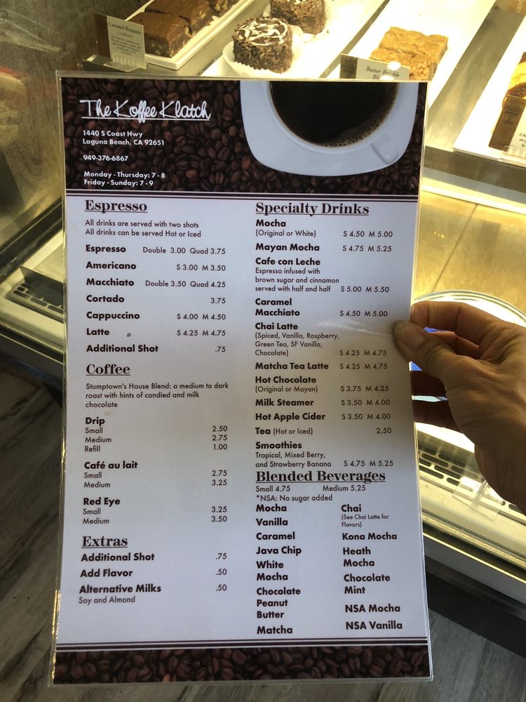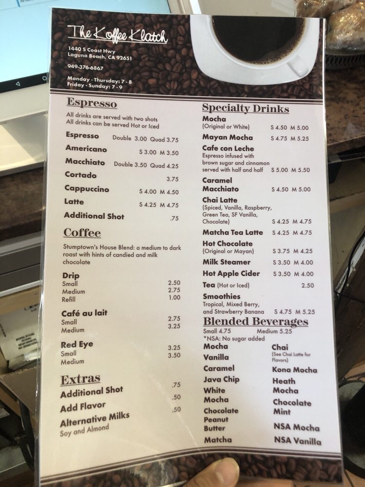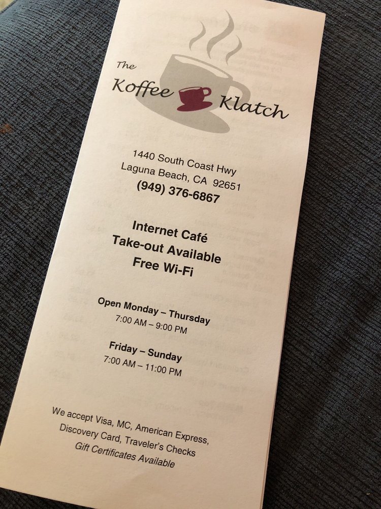 The Koffee Klatch in Laguna Beach is a charming cafe that offers a cozy atmosphere perfect for studying or unwinding with a good book. The cafe provides a variety of options for customers, including vegan and vegetarian dishes, delicious pastries, fresh juices, and top-notch coffee. Customers rave about the matcha latte, mini berry cheesecake, and fresh sandwiches. The friendly and efficient staff creates a welcoming experience for visitors, making it a great spot to relax and enjoy a tasty treat. With outdoor seating, free Wi-Fi, and gender-neutral restrooms, The Koffee Klatch caters to a diverse range of preferences. While wait times can be a bit long due to its popularity, the quality of the food and the cozy ambiance make it well worth the visit.